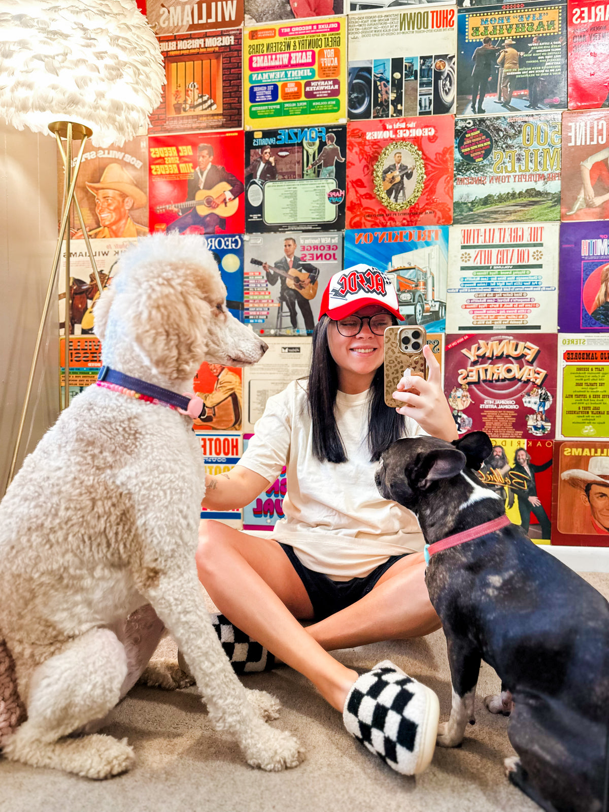 Hey, I’m the face behind this brand — a wife, boy mom, and dog mom who grew up at the drag strip with Def Leppard, Joan Jett, and 90.9 KSWP blasting in the background (if you’re local, you know). This whole “side hustle” started back in 2016 when I was a bored stay-at-home mom looking for a creative outlet — and it’s grown into my full-time gig.
